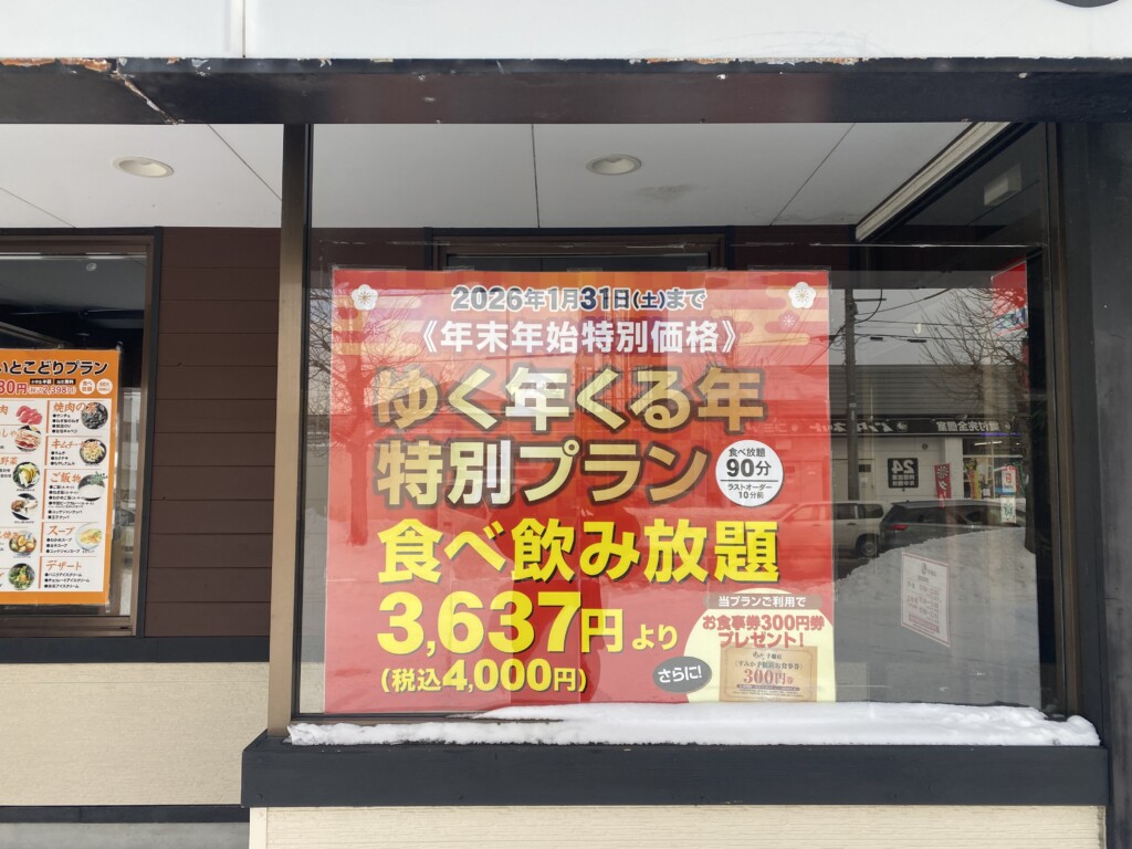 現在、焼肉すみか手稲店では、年末年始の特別企画として「ゆく年くる年特別プラン」を開催中です。