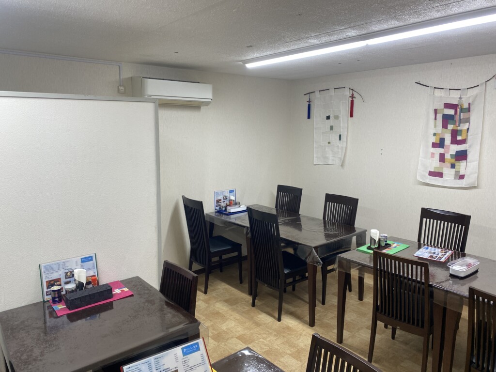 店内はとってもアットホーム!韓国の伝統的なタペストリーが飾られた清潔感のある空間で、30代・40代のママ友ランチや、お子様連れのご家族でもリラックスして過ごせそうです。