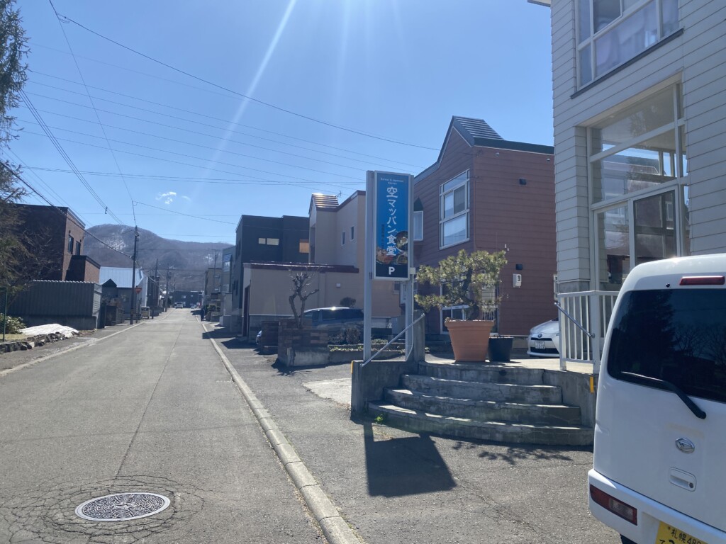 手稲区金山の静かな住宅街。そこにパッと目を引く青い看板が見えてきます。