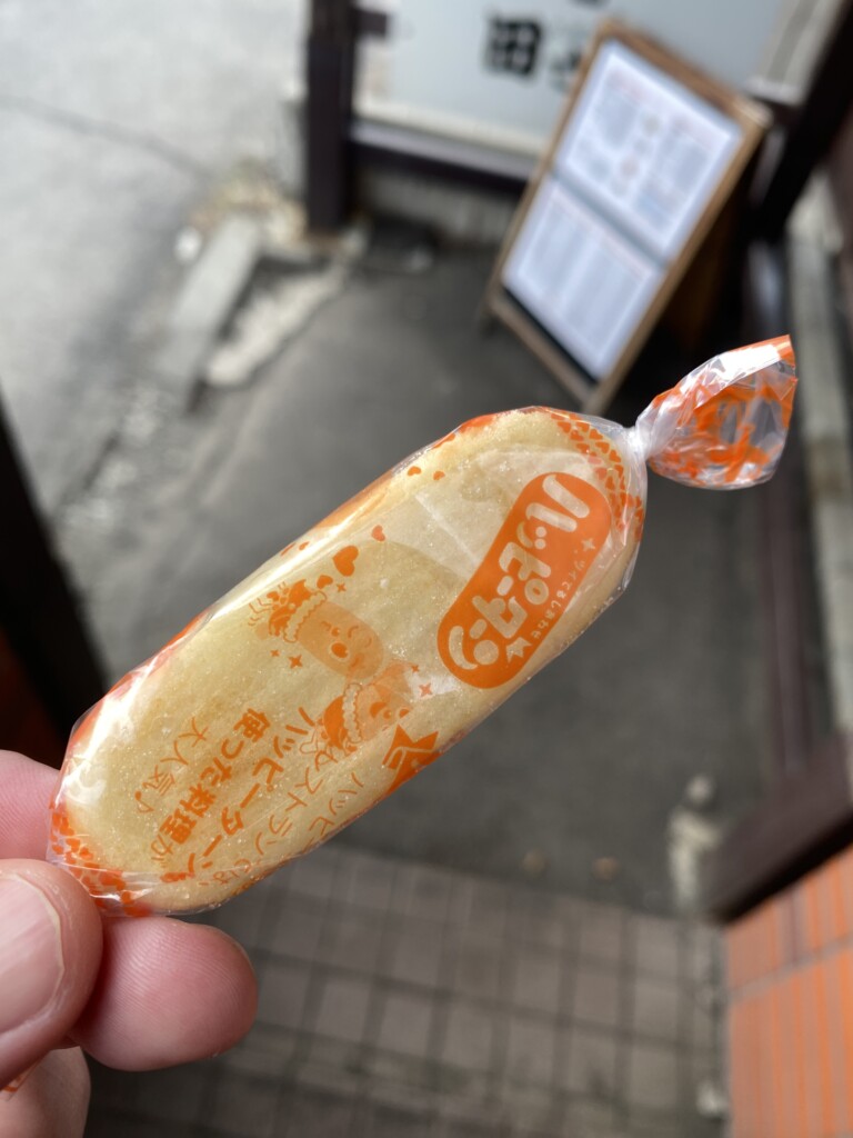 お腹いっぱい大満足でお会計を済ませると、スタッフさんから**「ハッピーターン」**のおまけをいただきました!